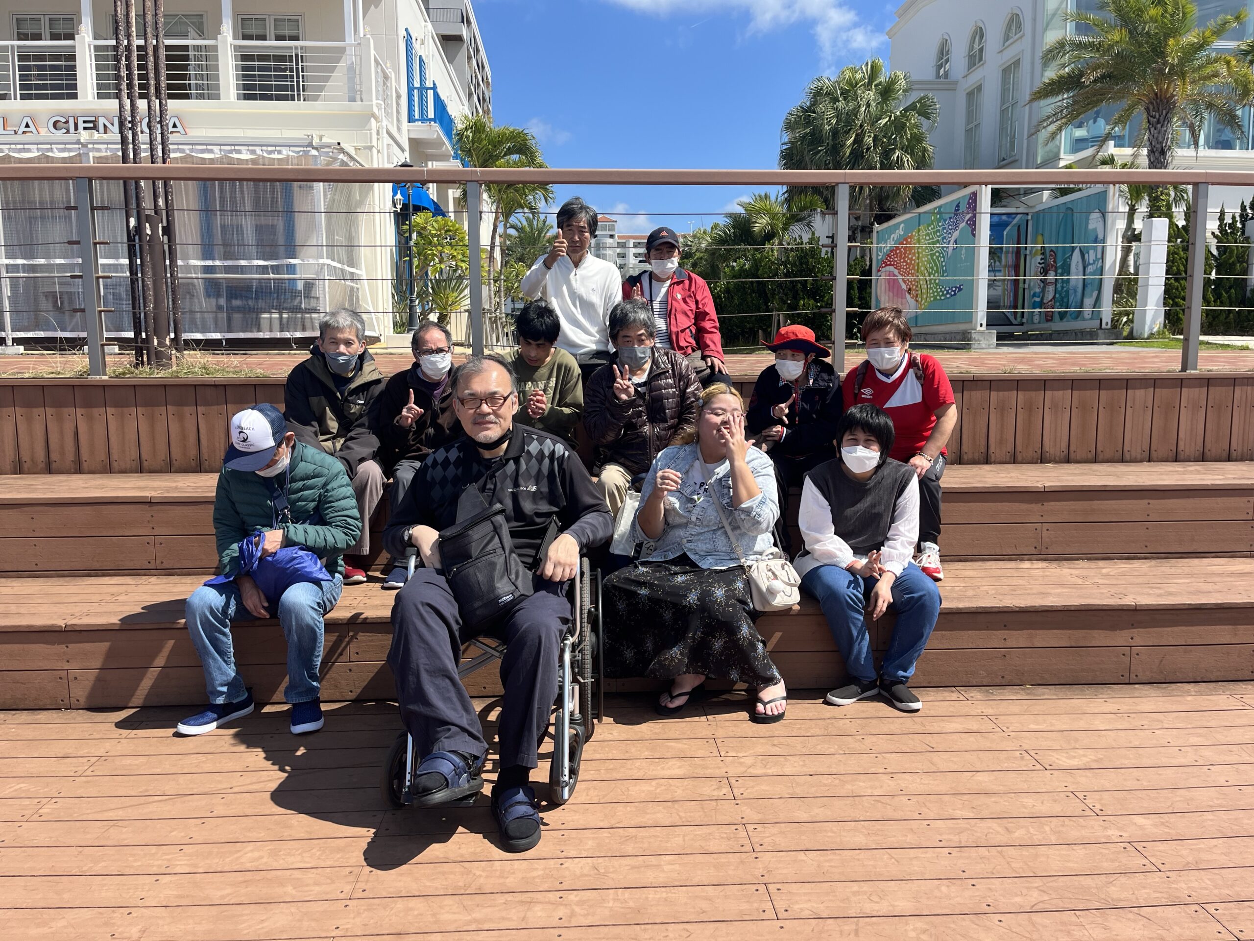7月の余暇活動は、気持ちよい晴天に恵まれ、開放感たっぷりの屋外で過ごしました。皆さまと一緒におしゃべりや記念撮影を楽しみ、たくさん笑顔があふれるひとときとなりました。